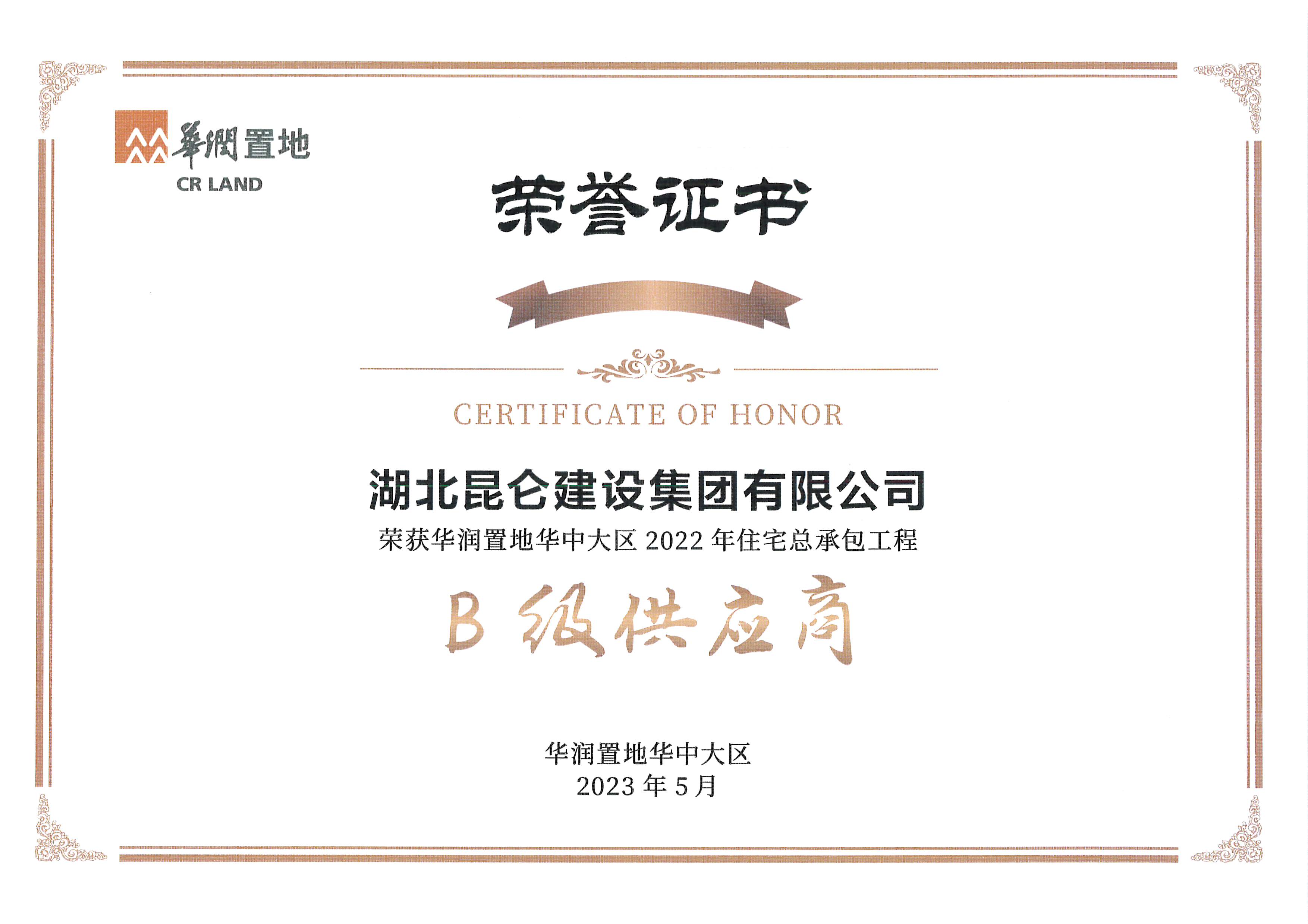 2023年5月榮獲華潤置地供應(yīng)商“攻艱克難獎”